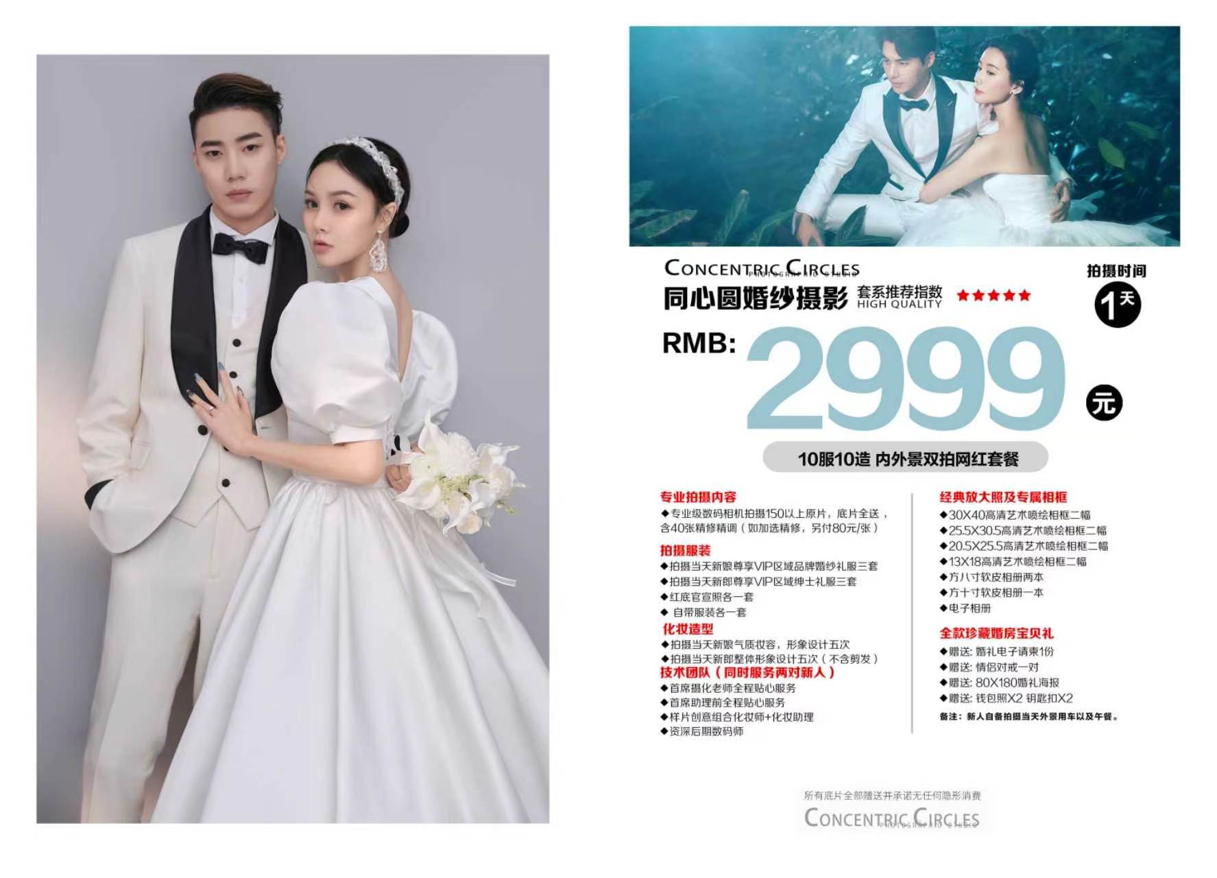 •专业级数码相机拍摄150以上原片,底片全送,含40张精修精调(如加选精修,另付80元/张)